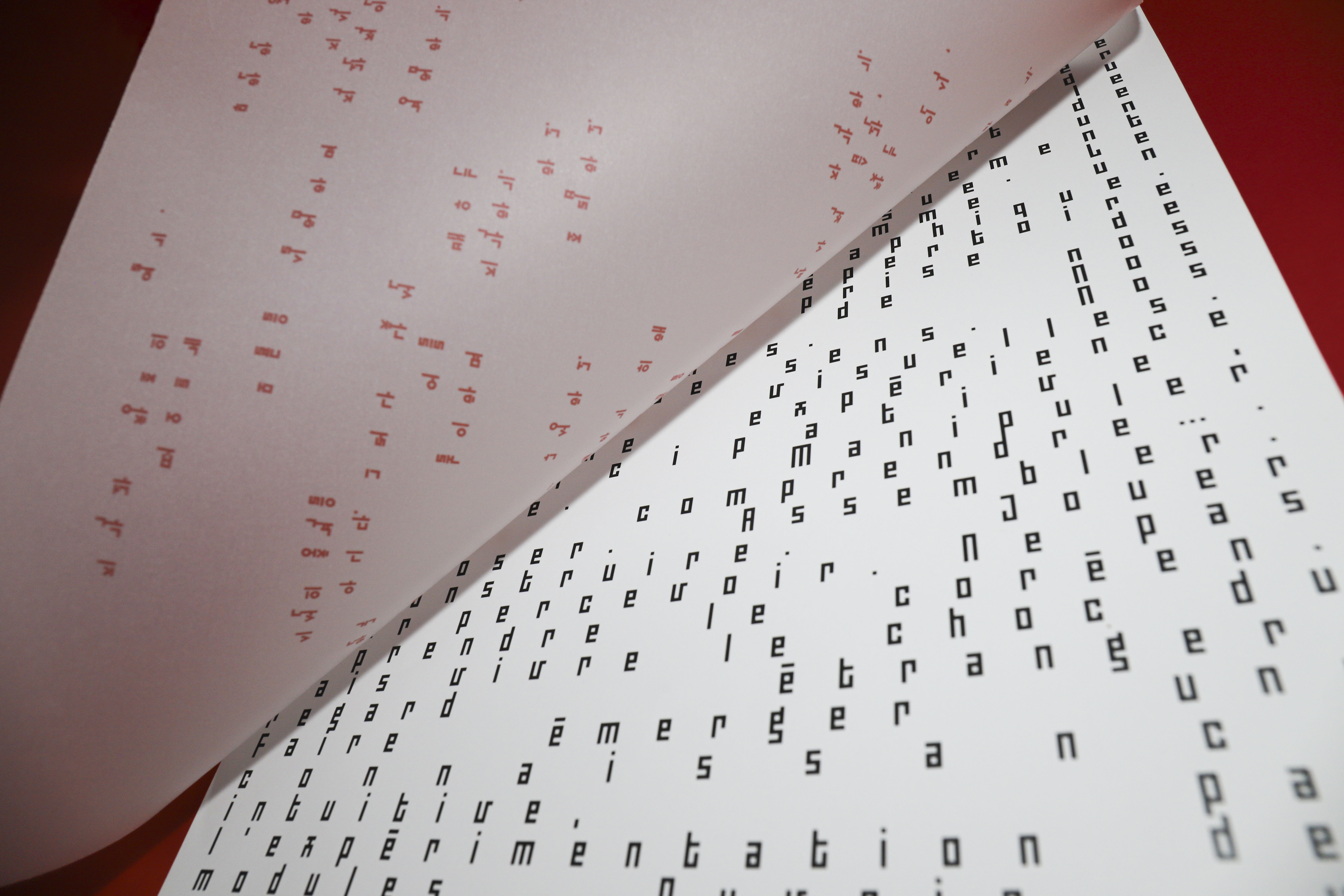 This poster presents the core ideas that emerge from the research and visually explores experimental typographic composition. Through multiple reading directions, layered tracing papers, and variations in letter spacing, it creates a dynamic typographic pattern.